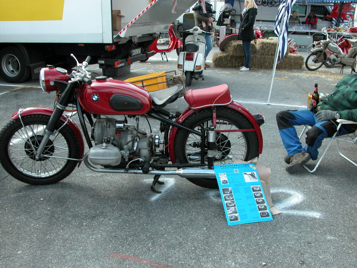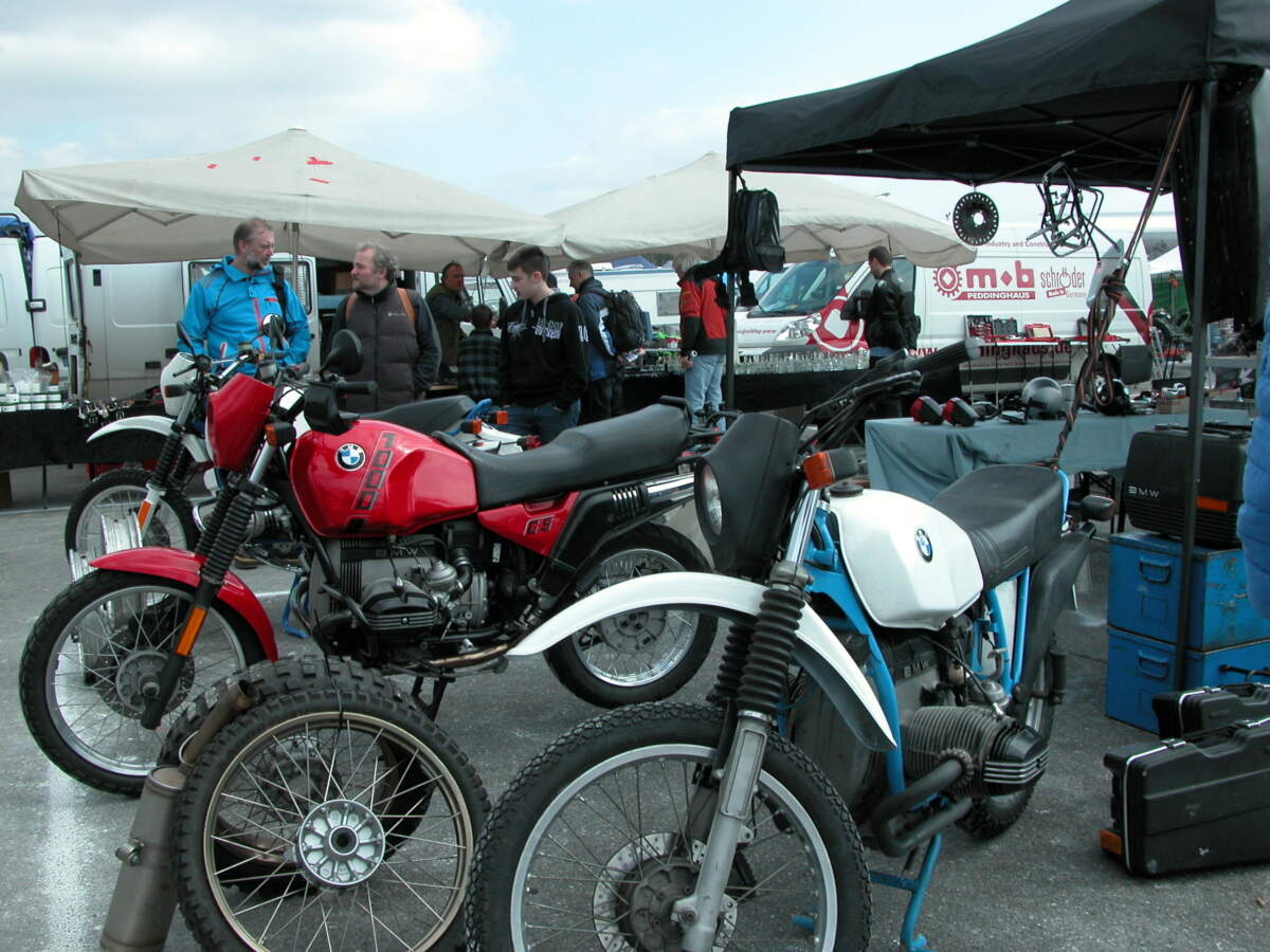 Für die BMW Motorrad Fangemeinde gab es auf jeden Fall wieder einiges zu sehen. Es wurden sehr viel Teile aus den Anfangszeiten der Bayrischen Motorenwerke auf dem Markt angeboten. Auch Rahmen aus Dachstuhlbränden fanden ihren neuen Besitzer. Es waren Händler wie BMW Meyer mit Teilen für BMW Motorräder bis /5, Siebenrock mit Ersatzteilen ab /5 Modell, Boxup mit seinen Edelstahlauspuffanlagen und weiterem Zubehör, Andreas Mattern mit seinen Fernreiseteilen, ERB Motorentechnik mit den Spezialteilen für Motor und Getriebe, die oft speziell für Jochen Siebenrock produziert wurden, Himmelheber und Fruhner mit seinen Gebrauchtteilen und dem jahrelangen Knowhow auf dem Gebiet der BMW Fahrzeugtechnik, Claudius Hinzen mit BMW Salvage, der ein unmessbares Resort an Gebrauchtteilen bereitstellt, und viele weitere Spezialisten vorhanden.