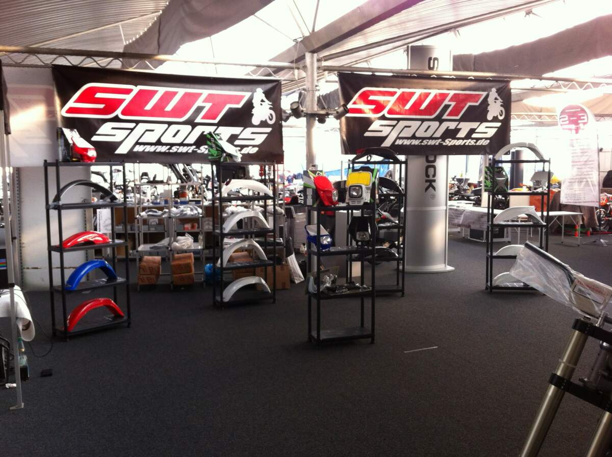 SWT-SPORTS konnte die Messe nutzen und seinen neuen Öl-Lieferanten ROCK OIL vorstellen und einen Auszug aus dem riesigen Kunststoffprogramm ausstellen. Auch das Rahmenkonzept, das es seit kurzem mit Straßenzulassung gibt, wurde vor Ort zur Schau gestellt.